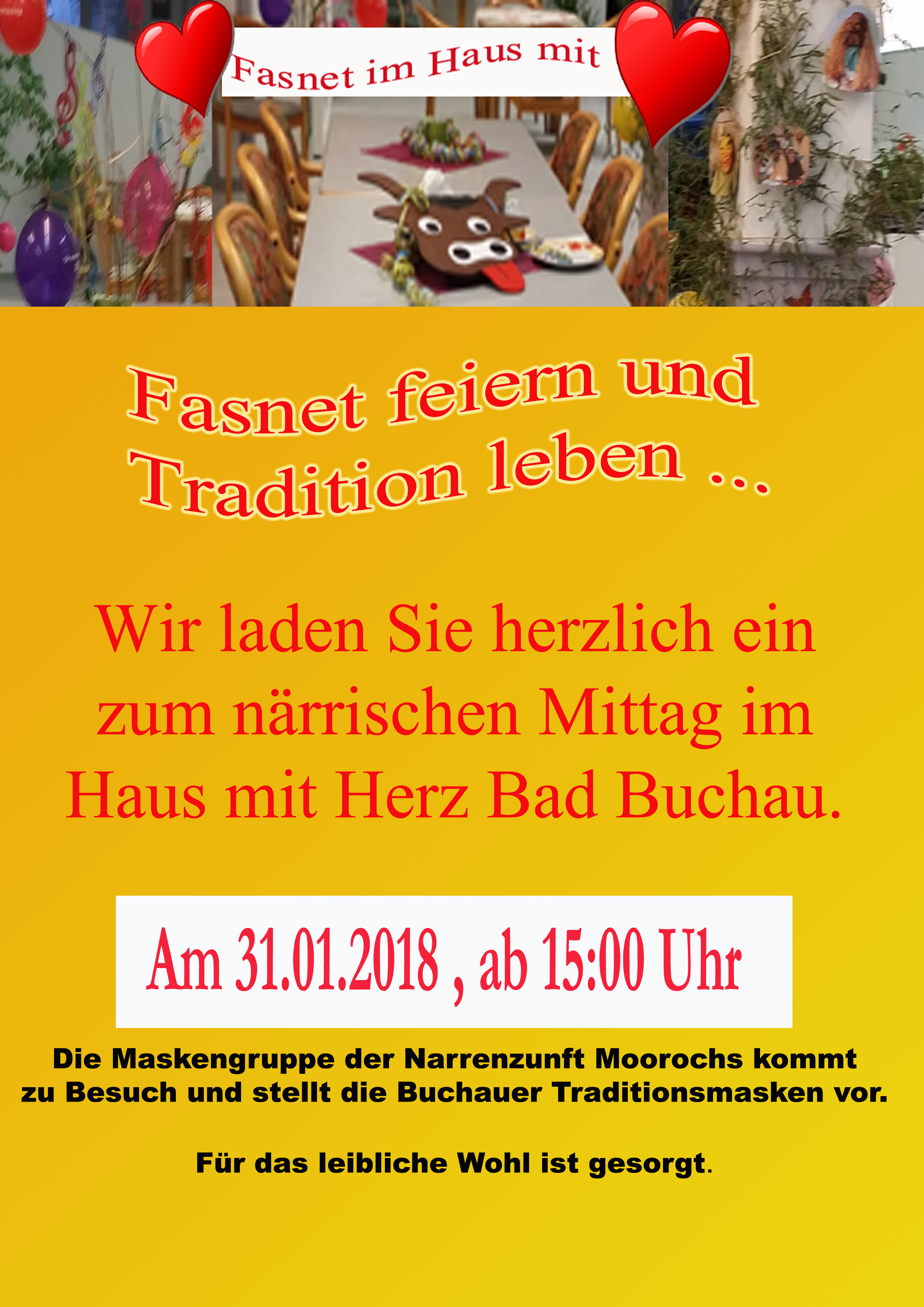 15 Januar 2018Tradition leben und feiern! Wir laden Sie herzlich am 31.01.2018, ab 15:00 Uhr ein. Für das leibliche Wohl ist gesorgt.